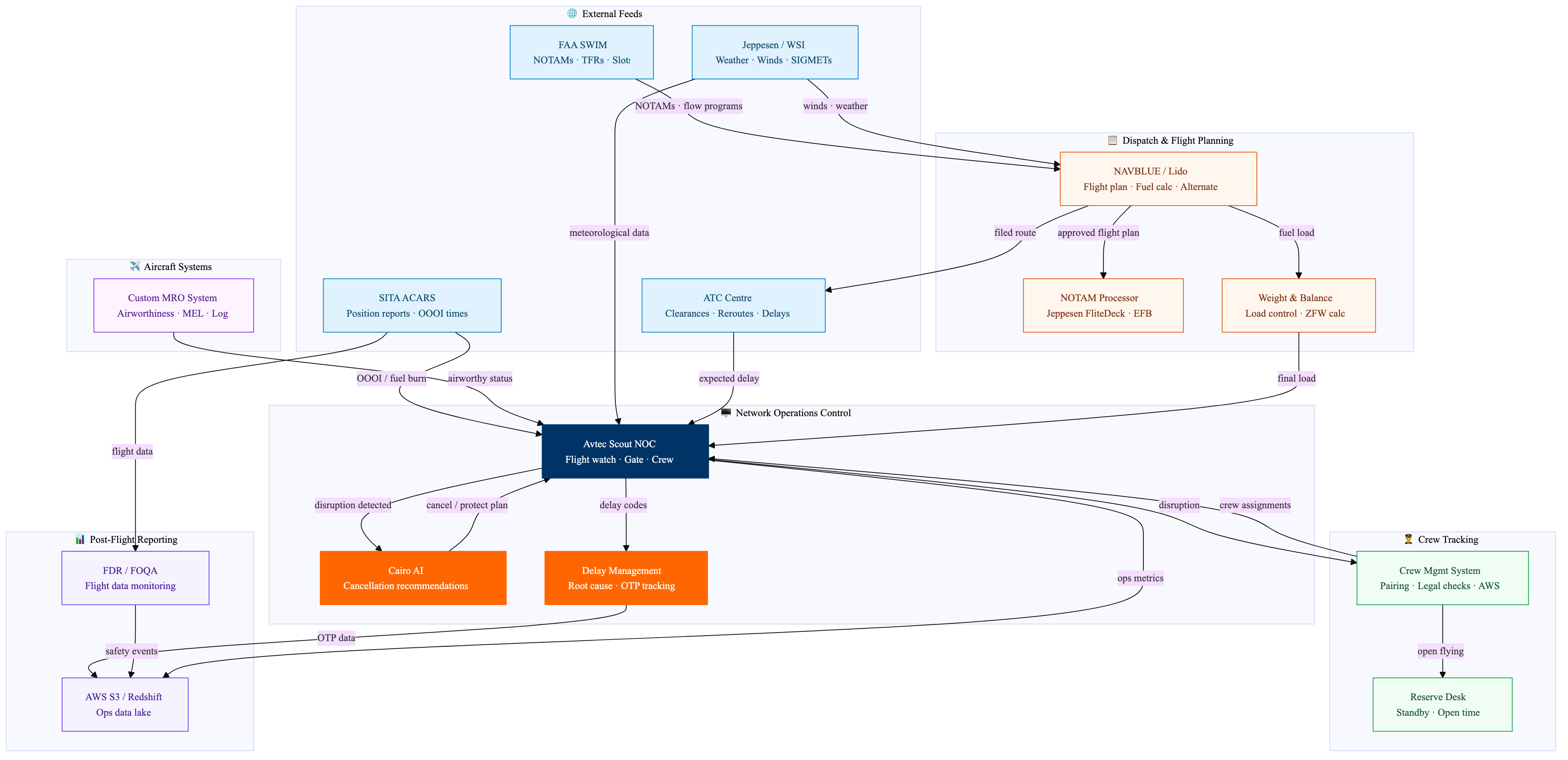 Flight planning, weather, ATC coordination and ops control data flows