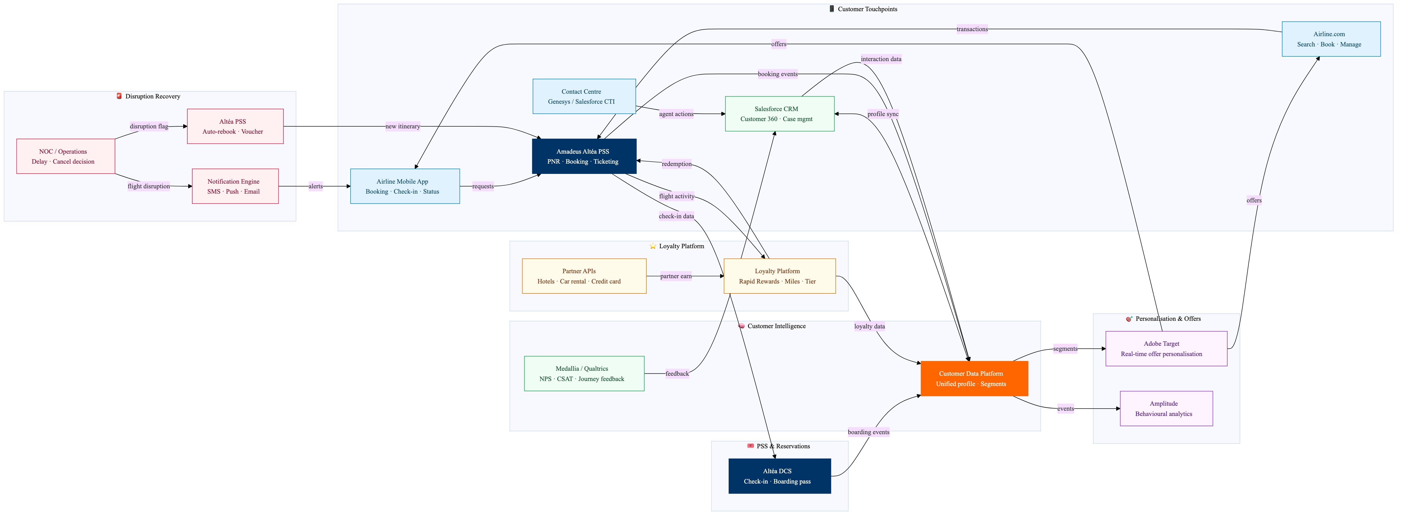 Customer data, loyalty accrual, disruption recovery and personalisation flows